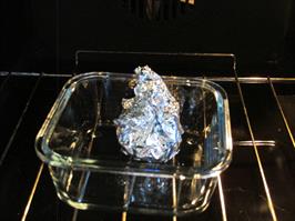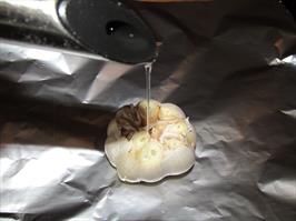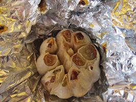 Wrap the garlic in aluminium foil and bake in the oven at 200°C for 30 minutes.